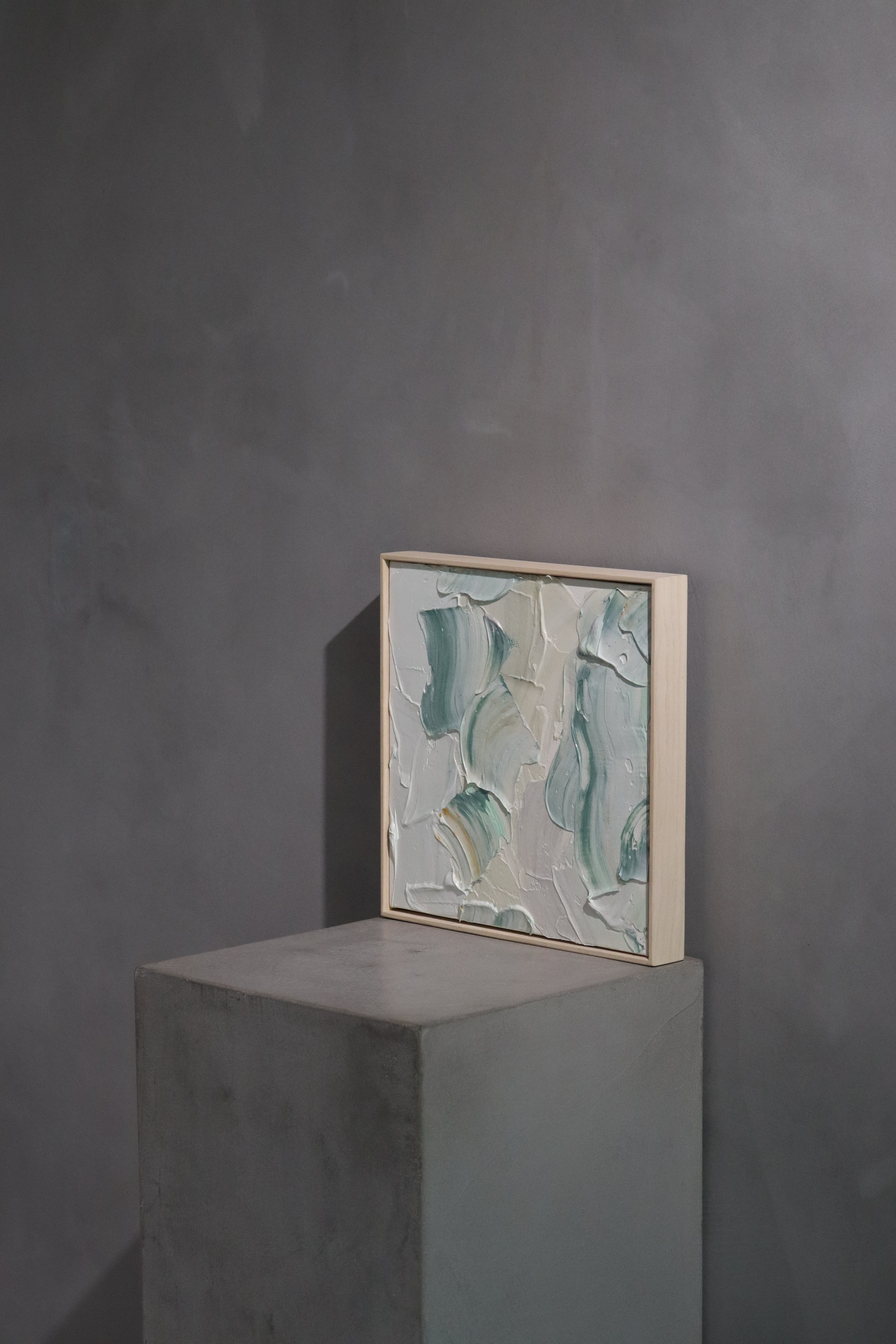 インテリアに合う落ち着いたグリーンとホワイトでまとめた作品です。人間の誠実さや、爽やかさを表現した作品です。